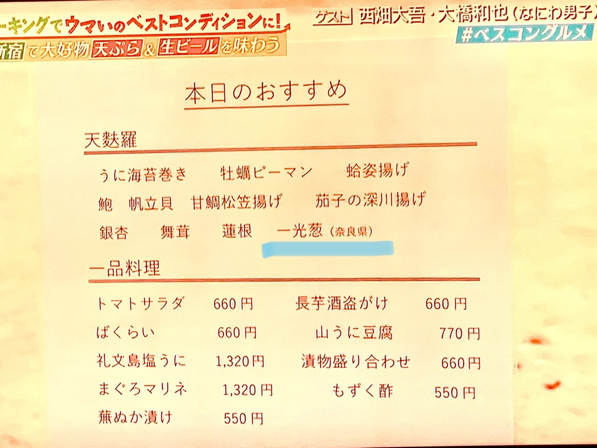 銀座つな八さんへなにわ男子さんが訪問された際のメニューで紹介されていました♪