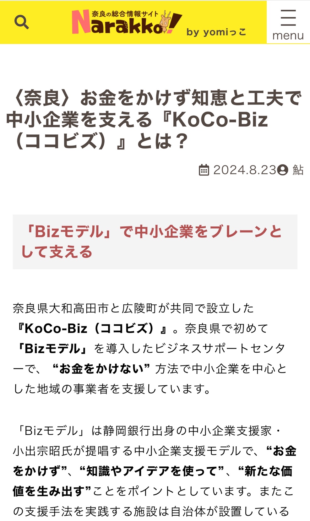 奈良県を中心にした地域WEBメディア「Narakko」にココビズが掲載されました! 開設4年目を迎えた今年、改めて外部より取材を受け、現在のプロジェクトや過去話題となったプロジェクトなどをご紹介させて頂きました。引き続き4年目も「地域事業者さまのためになにができるか」を考えサポートさせて頂きますので、ぜひココビズをご利用ください!初回相談はこちらから