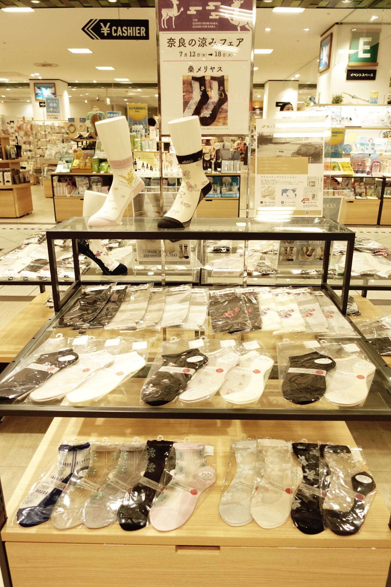 奈良県産商品をセレクトした売り場、『奈良に良し』のコーナーにて桑メリヤスさんの夏を感じる『涼夏』涼しい靴下のラインナップが発売中です!