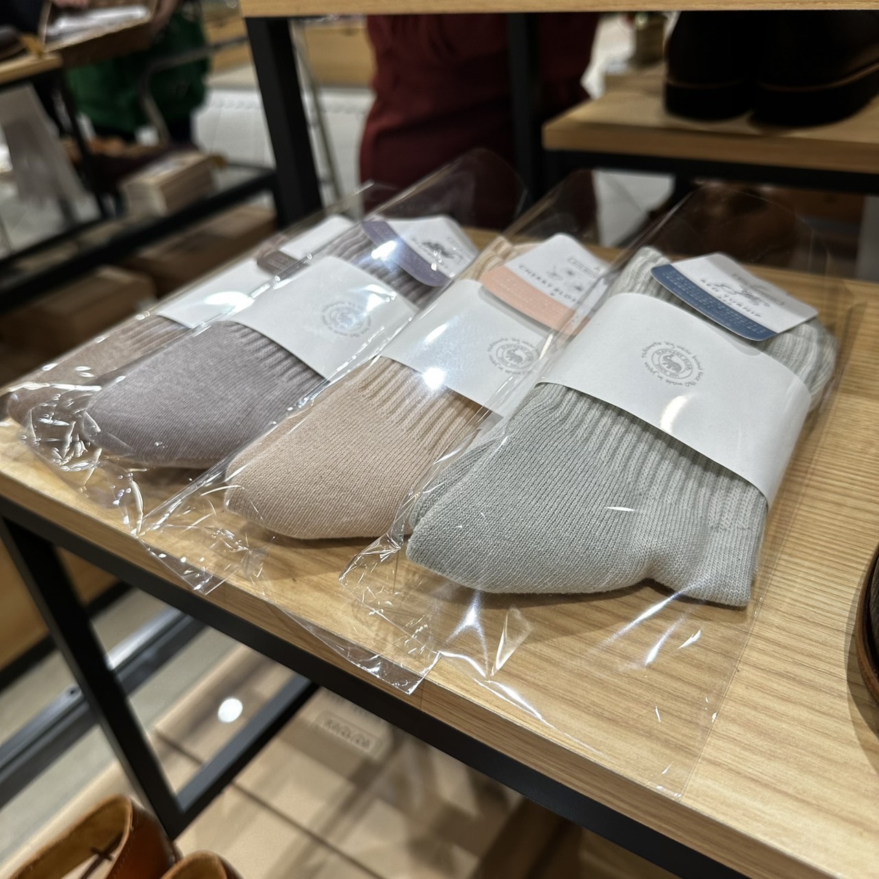 パステルカラーの柔らかな色味が印象的な靴下が沢山並んでおりますので